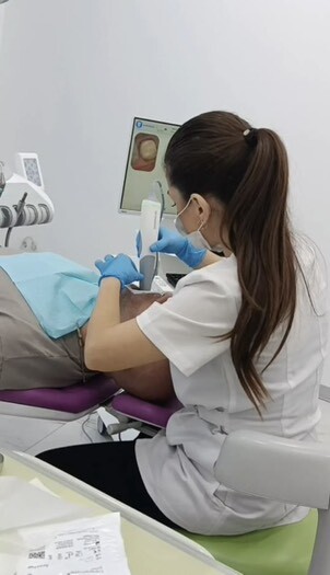 Создает точную цифровую 3D модель полости рта, виниров, элайнеров и протезов, делая процесс более комфортным и быстрым